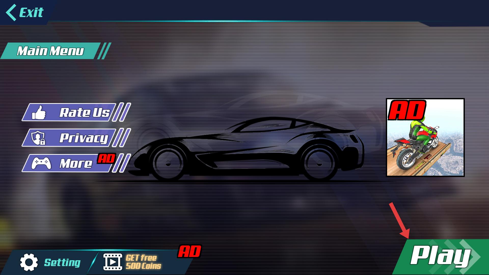 1、進入游戲主界面,有右下角的Play按鈕,點擊該按鈕,即可開始駕駛跑車的游戲。