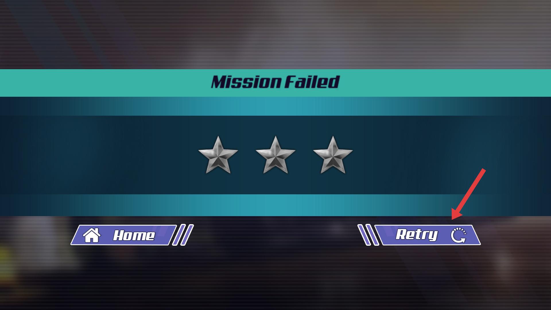 4、若任務失敗,界面會顯示Mission Failed,此時可點擊Retry按鈕,重新嘗試該任務,爭取順利完成。