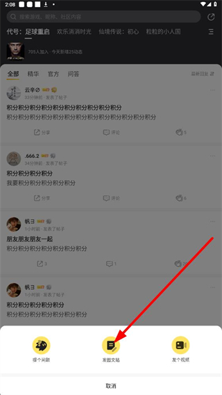 2、進圈頁面,可瀏覽玩家發布的帖子,點擊加號可選擇提問題、發圖文帖、發視頻等,參與社區互動。