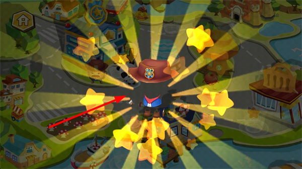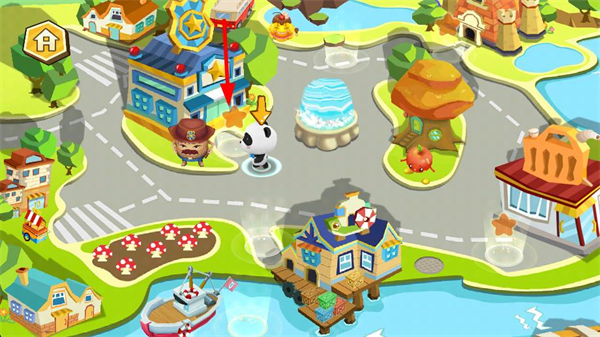 1、在小鎮場景里操控熊貓移動,前往指定的建筑附近,跟隨指引找到對應的互動點,開啟當前場景的任務流程。