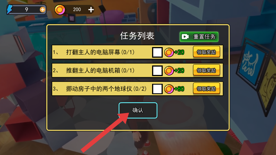 2、進入游戲后,會出現任務列表,有打翻電腦屏幕、推翻電腦機箱等任務,查看后點擊確認,開始執行任務。