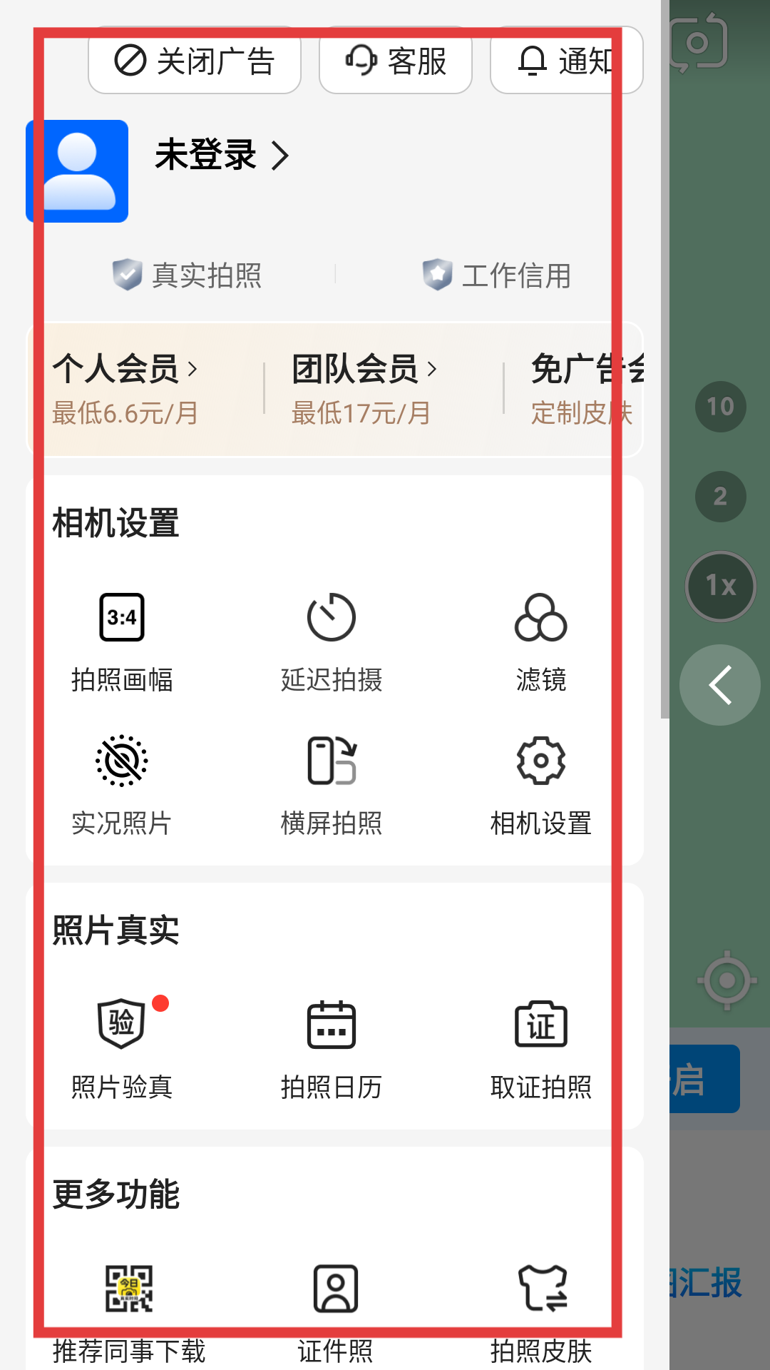 3、點擊主界面左上角的三條橫線圖標,可打開側邊欄菜單,這里有豐富的功能設置,幫助用戶個性化定制相機功能,更好地發揮今日水印相機的作用。