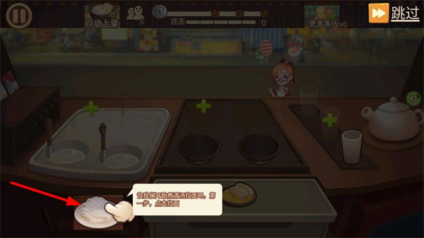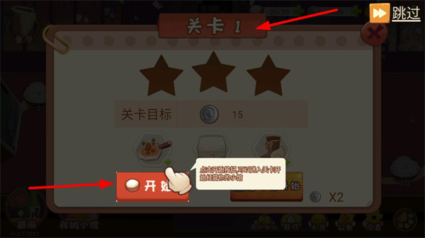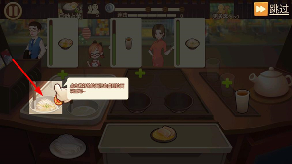 1、進入關卡1界面查看關卡目標,點擊開始按鈕進入關卡,開啟面館的經營流程,著手完成關卡對應的任務要求。
