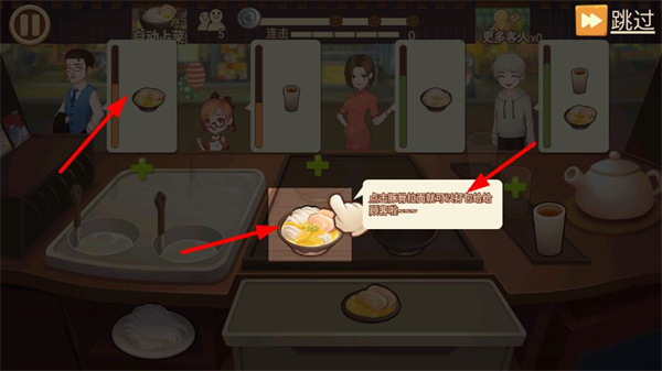 4、餐品準備好后,按提示點擊盛好的拉面,將其打包并交付給對應的顧客,完成訂單以推進面館的經營進度。