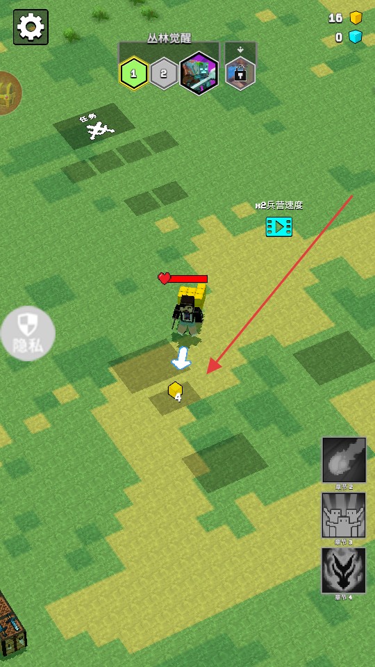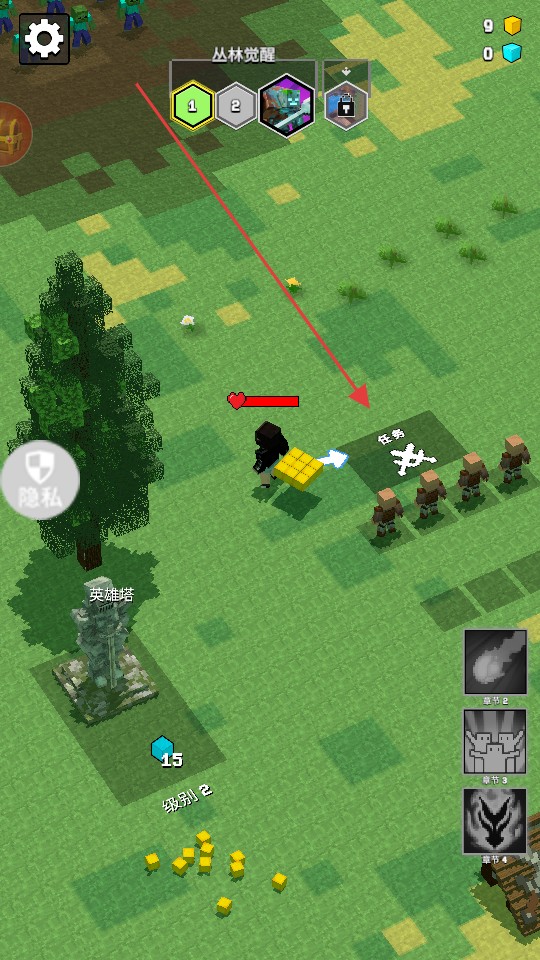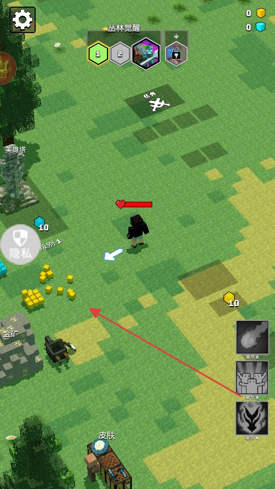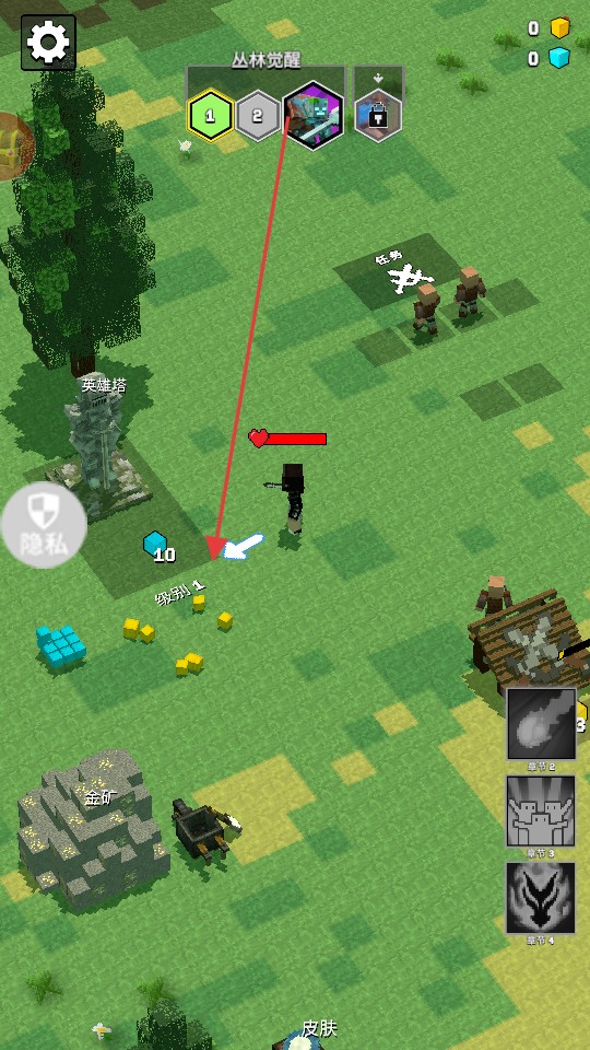 3、回到英雄塔附近,收集藍色方塊等資源,讓角色的等級或能力得到提升,同時留意其他可互動的元素,為后續任務做準備。