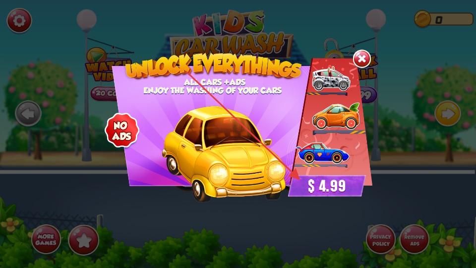 4、店鋪裝飾玩法:通過賺取金幣購買霓虹燈牌、植物盆栽等裝飾物,自定義洗車鋪外觀風格,同時提升店鋪等級解鎖高級服務項目。