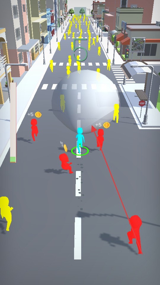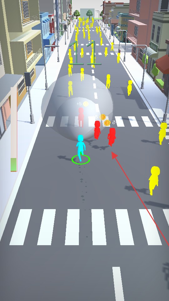 3、持續按住屏幕調整藍色小人的移動方向,留意周圍小人的分布情況,讓積累更高分數,同時避免被過多小人包圍。