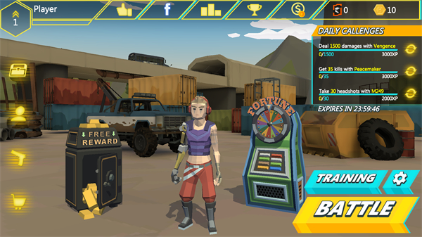 4、可參與每日挑戰,完成挑戰能獲取經驗等獎勵,也能通過免費獎勵和轉盤獲取資源,點擊BATTLE可進入戰斗。