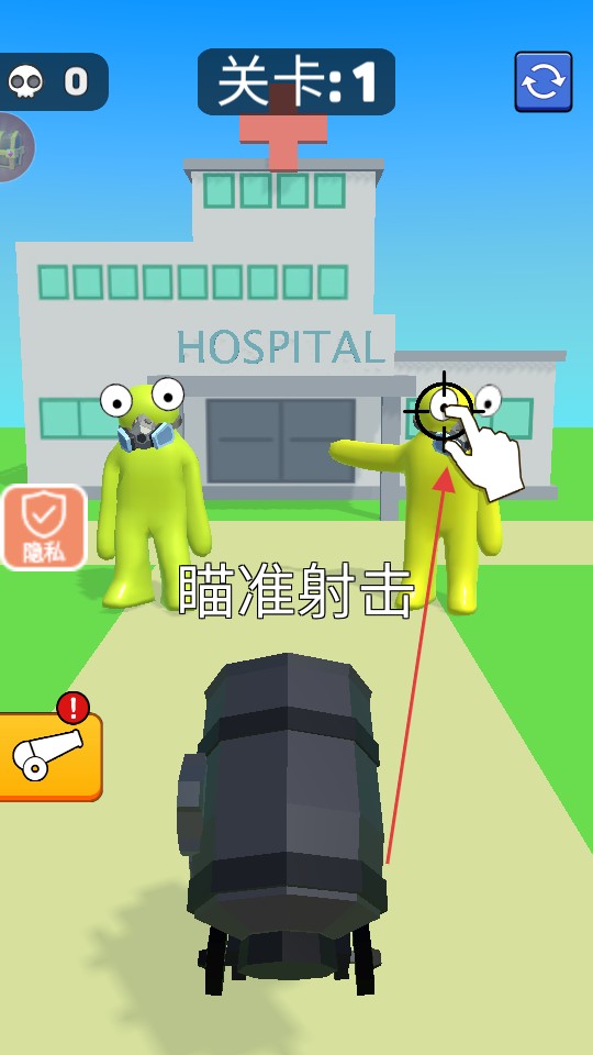 2、進入第1關后按照提示瞄準該角色進行射擊,有瞄準提示和射擊道具,操作時注意瞄準的準確性。