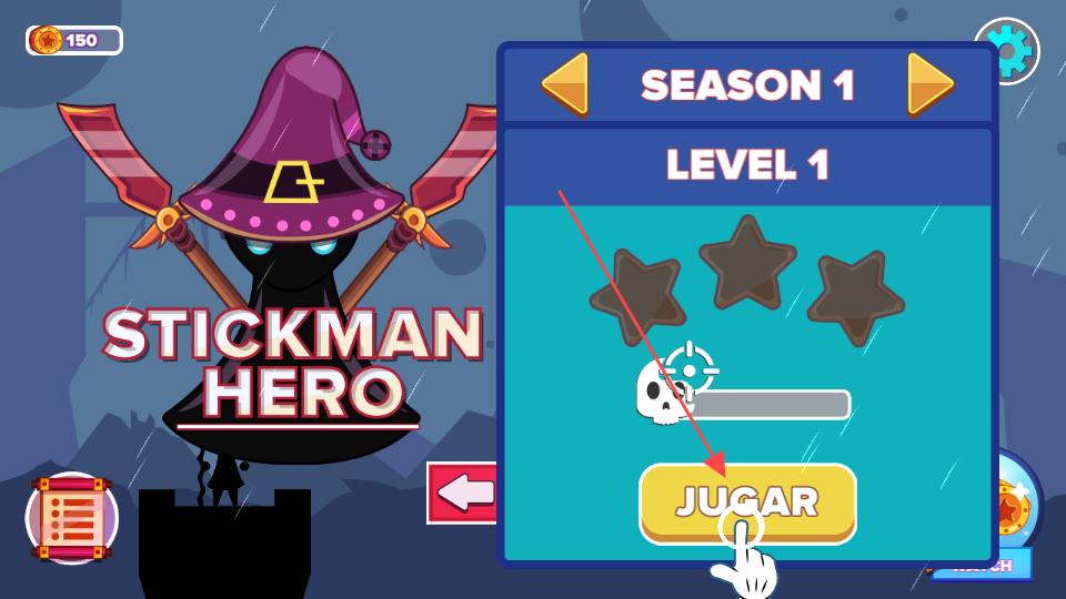 2、進入關卡選擇界面后點擊JUGAR按鈕,開始Season1的Level1,隨后準備進入戰斗場景,開啟火柴人之間的對戰。