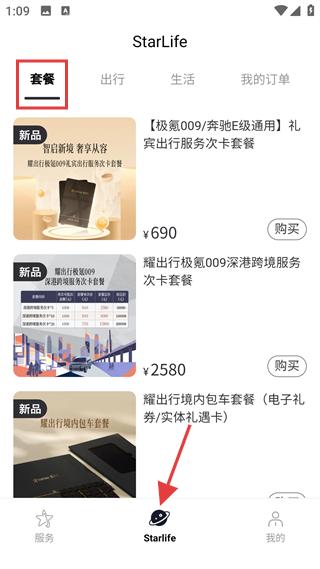2、套餐頁面展示禮賓出行等服務次卡套餐,標注價格并設購買入口,是高端出行套餐的選購模塊。