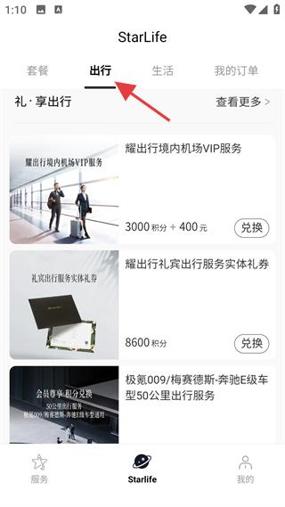 3、出行頁面提供機場VIP等權益兌換,需積分加現金或純積分,是出行相關權益的兌換渠道。