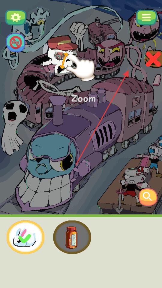4、持續在場景中探索點擊火車的相關區域,尋找剩余的指定物品,當物品尋找錯誤時,會出現一個錯誤標識。