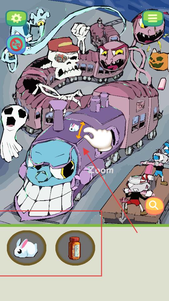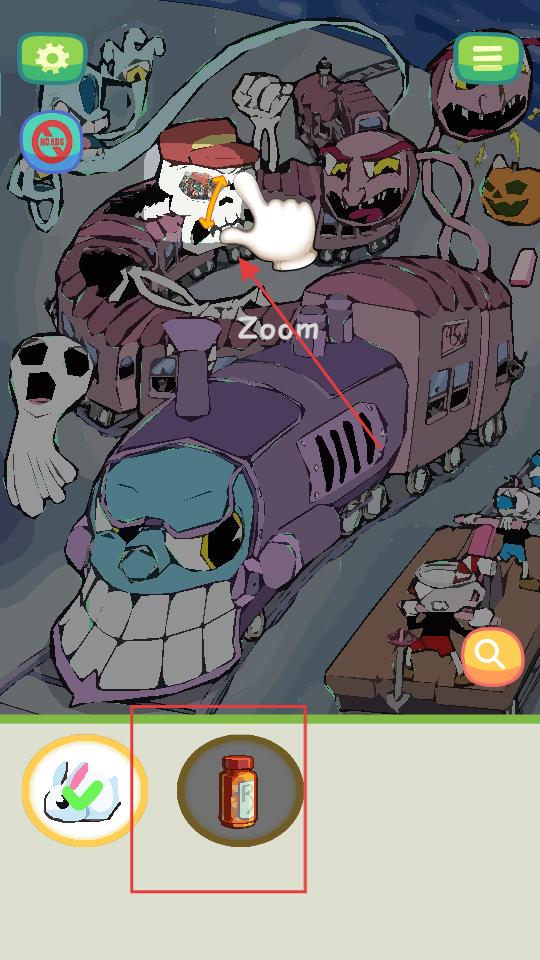 2、進入游戲場景后查看下方的物品圖標,根據提示點擊火車上的白色兔子,開始在奇幻場景中尋找指定物品,逐步推進游戲進程。