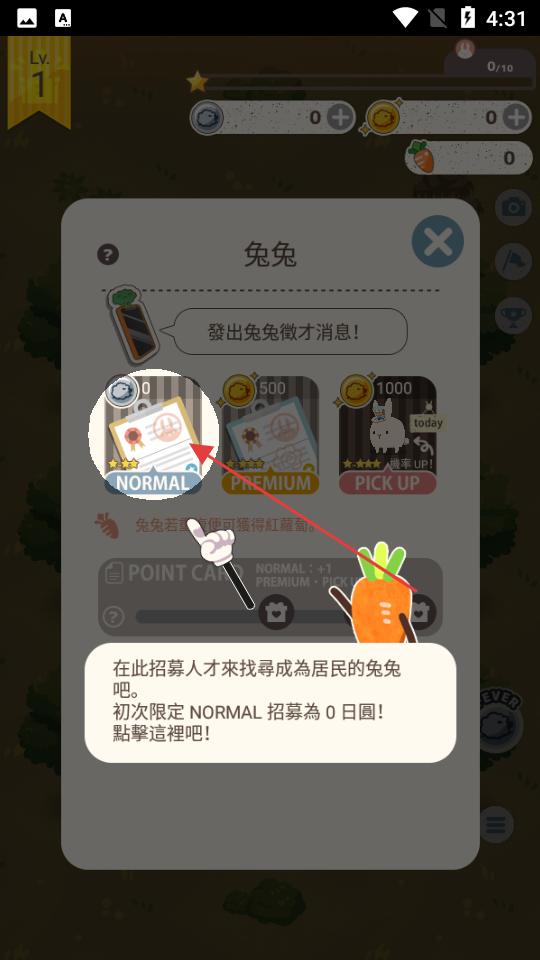 2、在兔兔招募界面選擇初次限定的NORMAL招募選項,該選項可免費進行招募,點擊后進入具體的召喚準備界面。