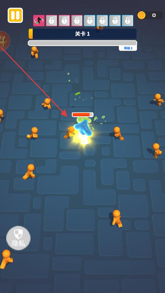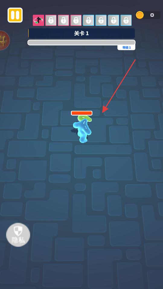 2、操控藍色的果凍狀角色,對敵人發起攻擊,注意上方有關卡進度,開啟持續探索。