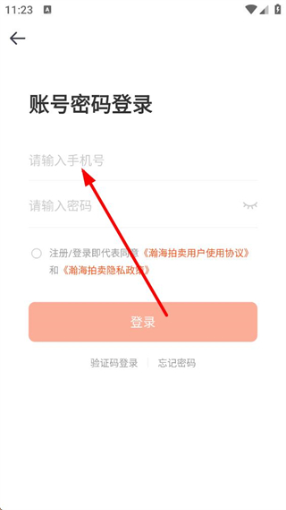 4、進入賬號密碼登錄界面,需輸入手機號與密碼,勾選相關協議后,點擊登錄按鈕,完成該方式的登錄流程。