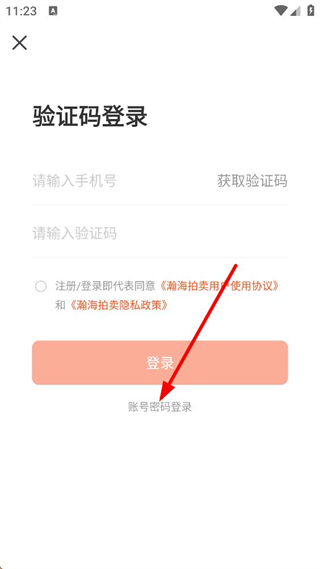 3、進入驗證碼登錄界面,需輸入手機號獲取并填寫驗證碼,勾選相關協議后可登錄,也能切換至賬號密碼登錄方式。