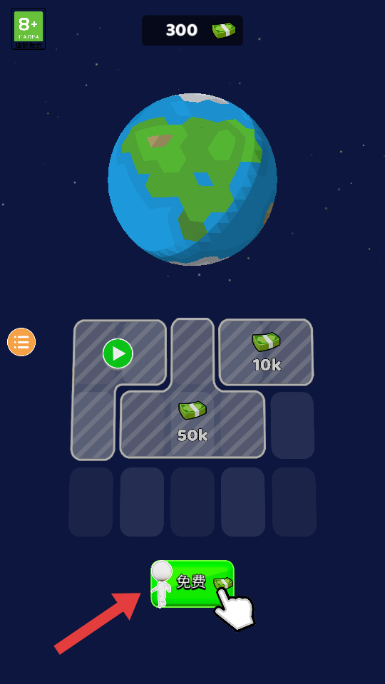 1、進入游戲,可點擊免費按鈕獲取資源,界面有不同金額的資金選項,還有開始等功能按鈕,準備破壞星球。