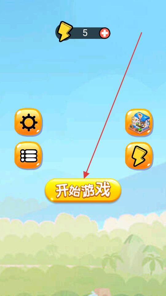 1、在游戲初始界面點擊中間的開始游戲按鈕,此時會進入第一關的游戲場景,小蛇出現在木質平臺上,為后續操控小蛇闖關做好準備。