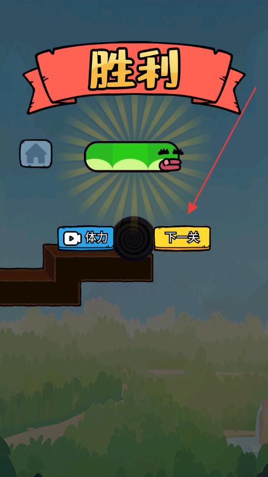 4、當小蛇成功移動到黑色旋渦位置后,游戲會顯示勝利界面,此時點擊下一關按鈕,即可進入下一個關卡,繼續操控小蛇進行闖關。