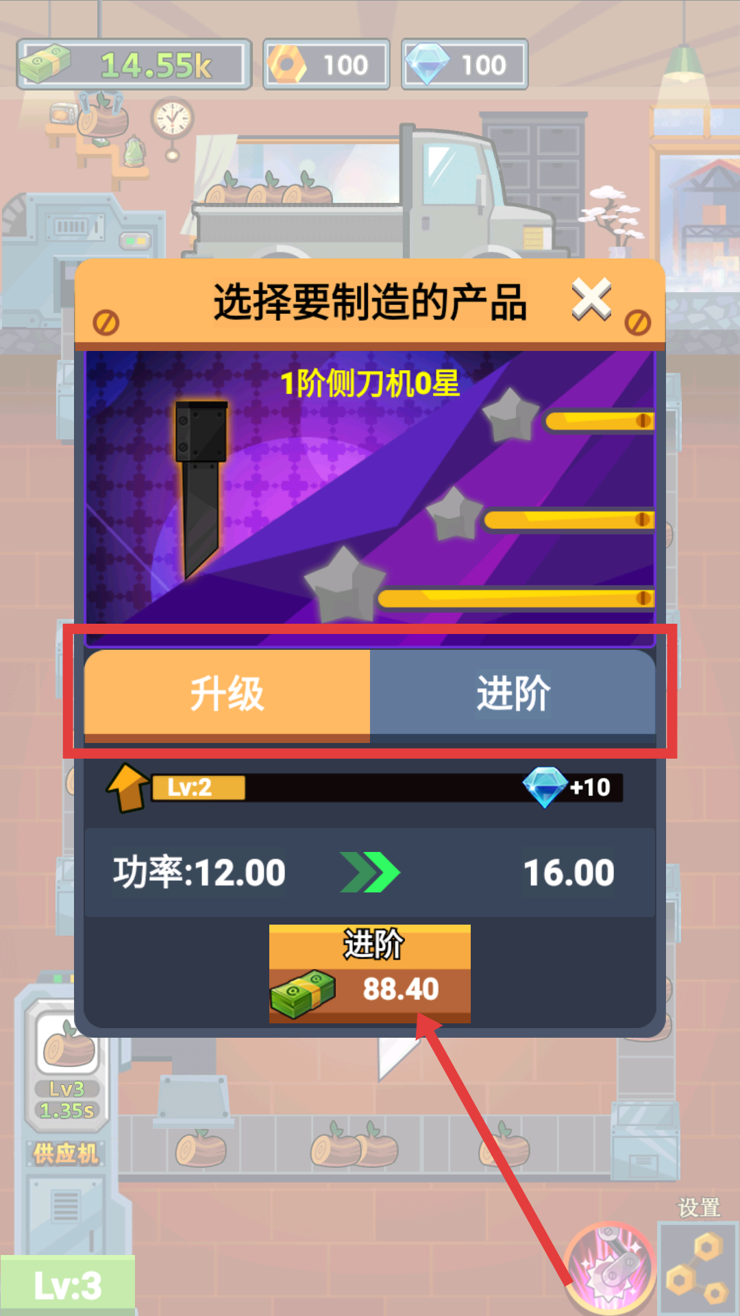 2、可以對機器進行升級、進階操作,可有效提升機器功率,讓生產效率大幅提高,以此增加賺錢速度。