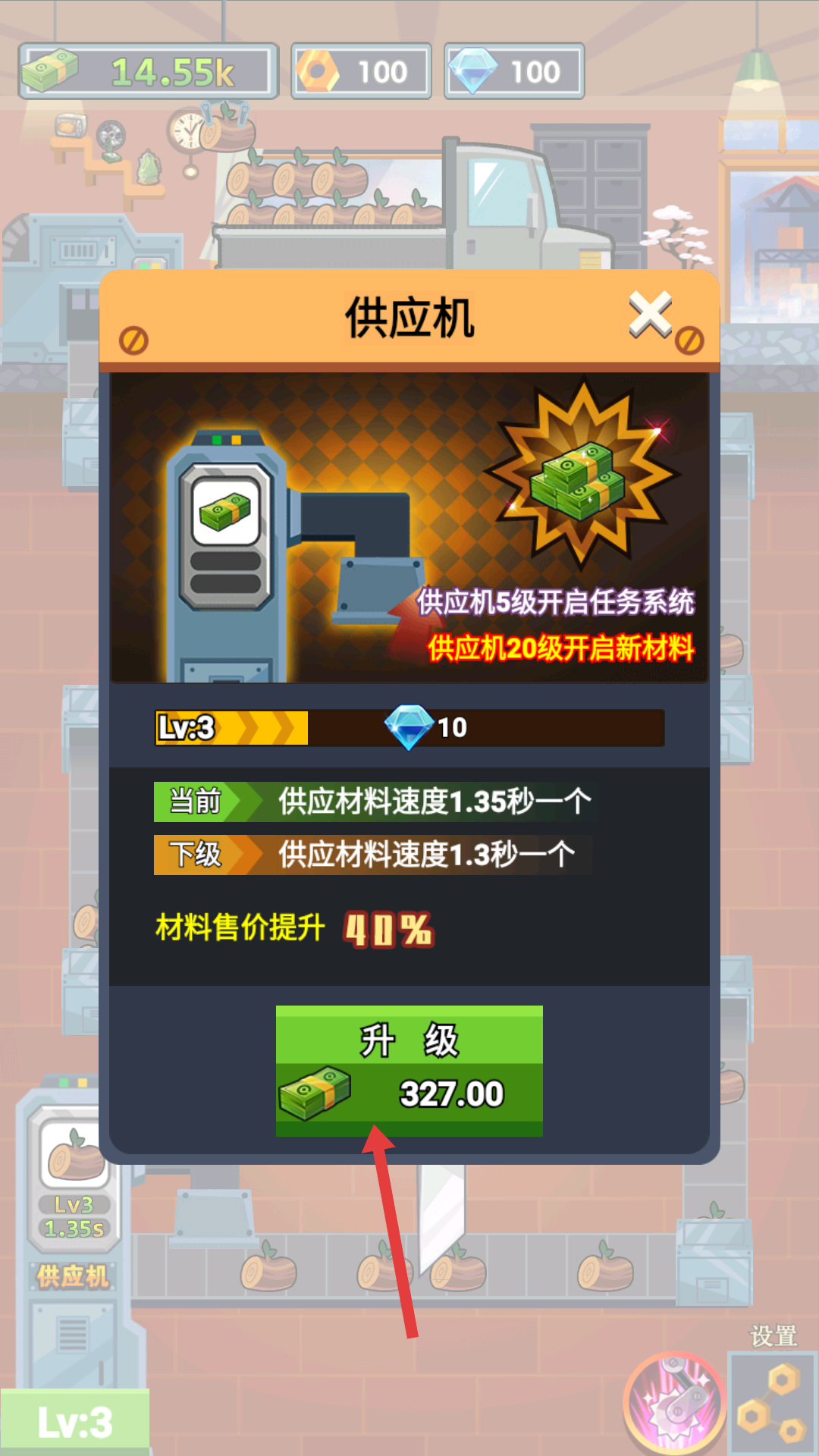 3、及時升級供應機,不僅能加快材料供應的速度,還能提升材料的售價,從材料端增加盈利。