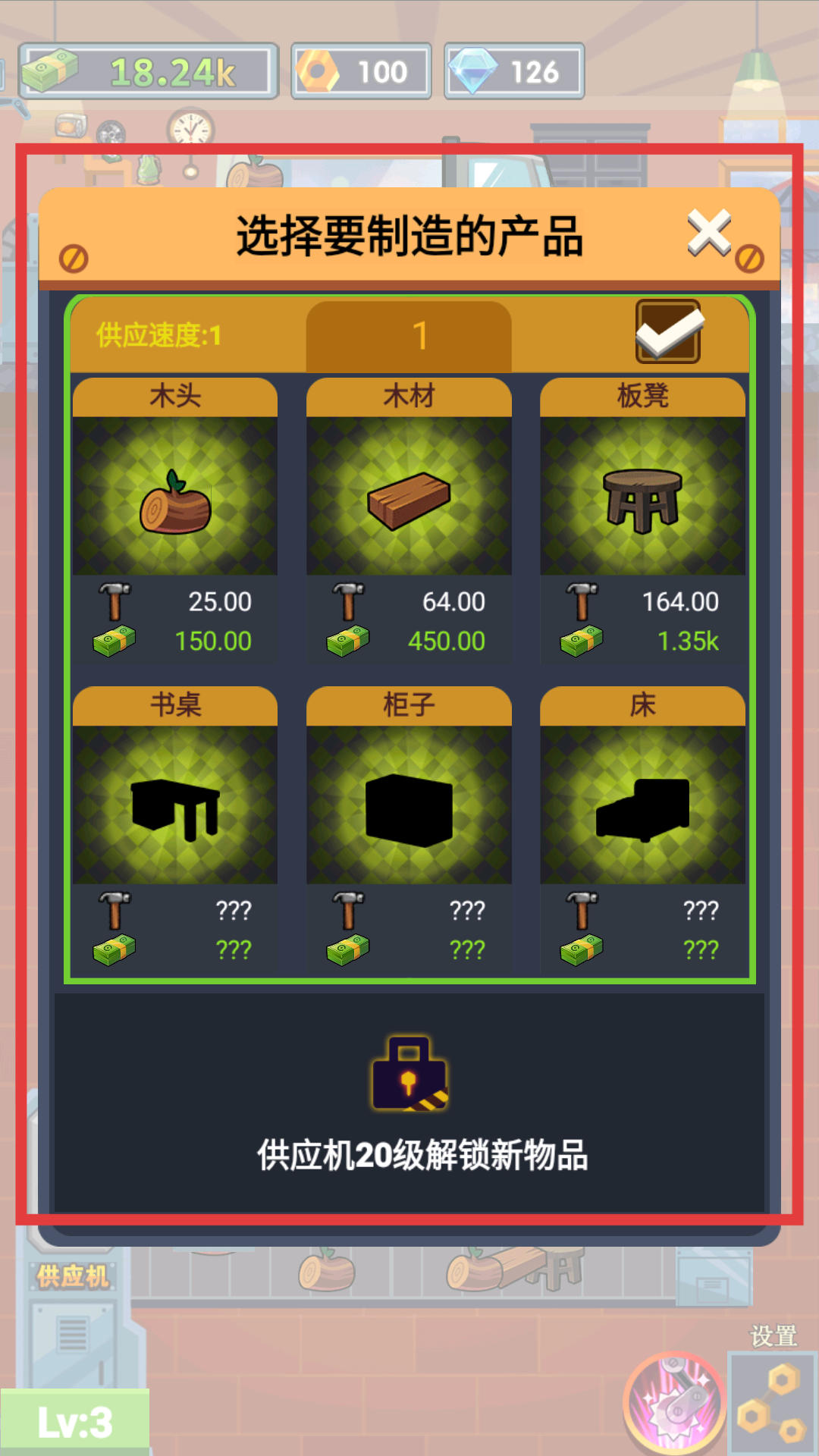 4、不斷升級供應機后,玩家可以解鎖更多可制造的產品,生產更值錢的產品,能獲得更高的利潤回報。
