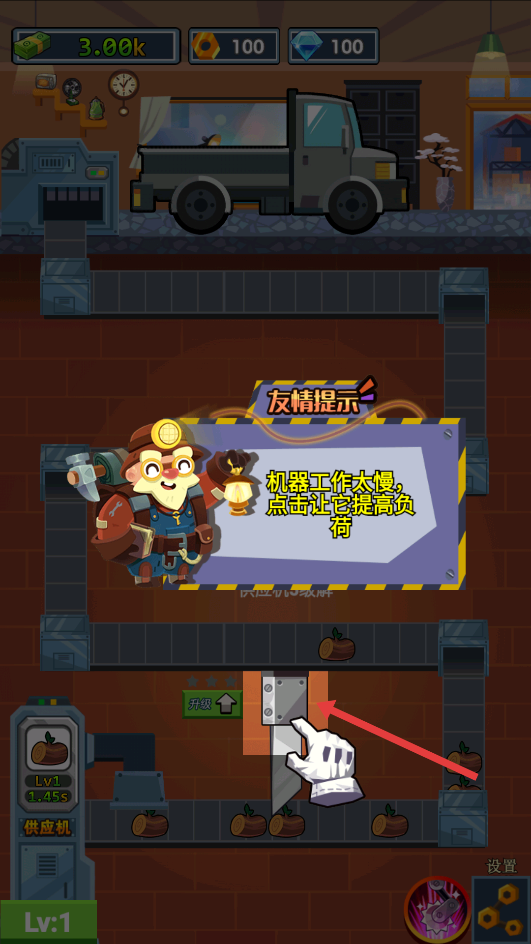 1、機器工作速度慢,及時點擊提高負荷,能讓機器更快運轉,加速物品產出進而獲取更多收益。