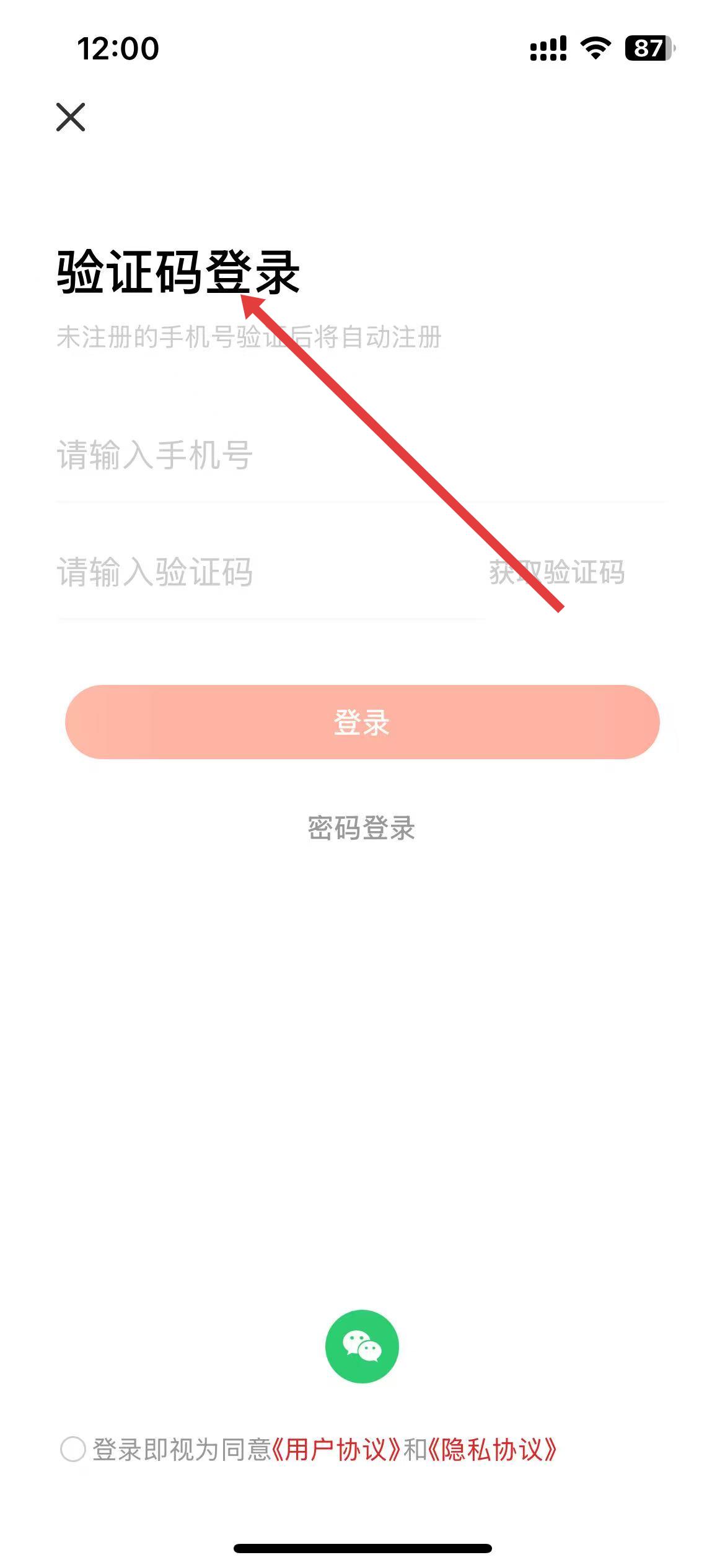 3、點擊我的進入個人中心界面,若未登錄,可點擊登錄入口,選擇驗證碼登錄或微信登錄方式。