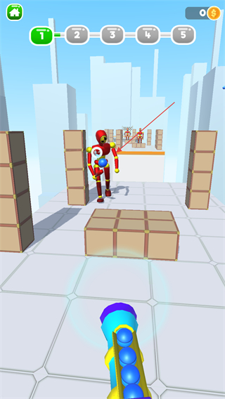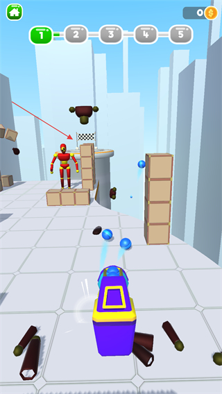 3、在關卡中不斷調整射擊角度和位置,發射子彈將場景內的所有敵人全部擊倒,在射擊過程中注意障礙物。