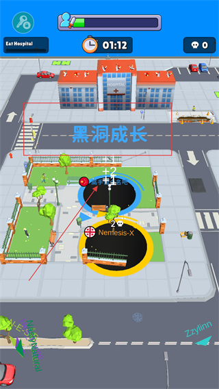 2、操控黑洞靠近街道上的行人等物體黑洞會將它們吞噬,每吞噬一個物體黑洞就會獲得相應的成長。