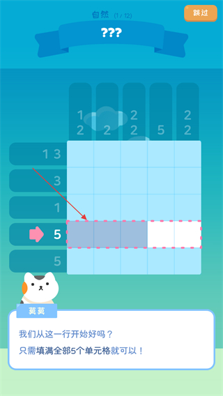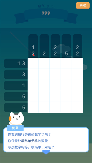 2、進入關卡后仔細查看每行旁邊的數字,數涂規則是讓填色單元格的數量與該行旁邊的數字相等。