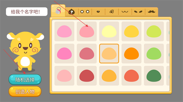 2、進入創建萌寵界面后選擇萌寵的外觀顏色等,打造出獨一無二的萌寵形象,點擊創造人物完成萌寵創建。
