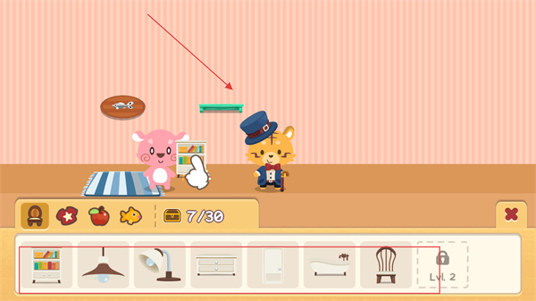 3、利用游戲中獲得的金幣或道具點擊下方的家具圖標,為萌寵的家園購買和擺放家具,隨著等級提升可以解鎖更多款式的家具。