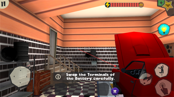 2、利用屏幕上的操作按鈕如方向控制按鈕、互動按鈕,在場景中移動并完成任務阻止強盜偷走汽車。
