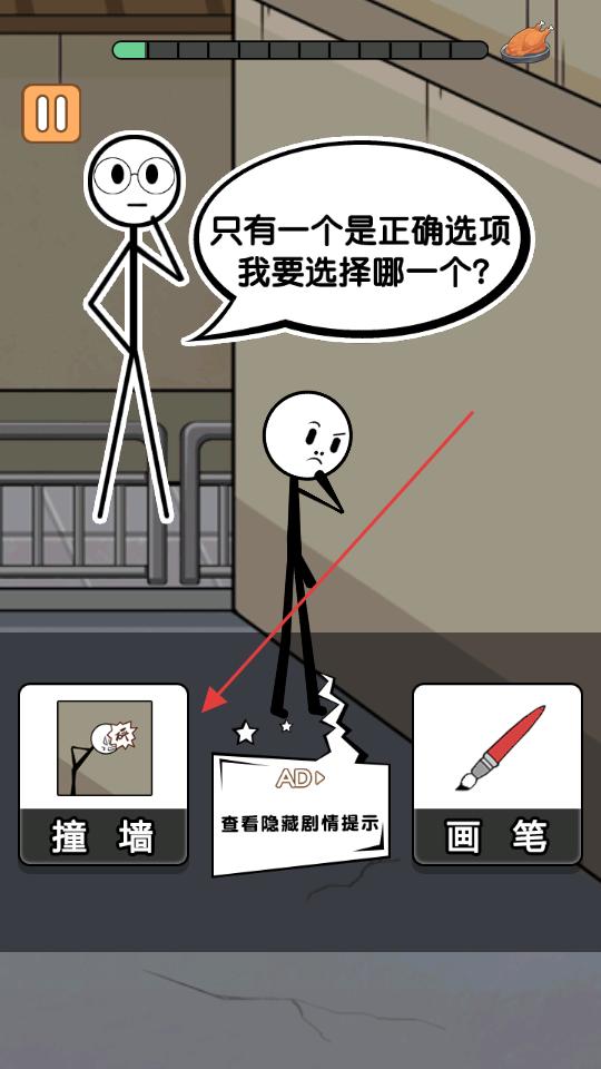 3、選擇操作后火柴人依照所選內容行動,比如選撞墻后,火柴人嘗試撞擊墻壁,觀察劇情推進情況。