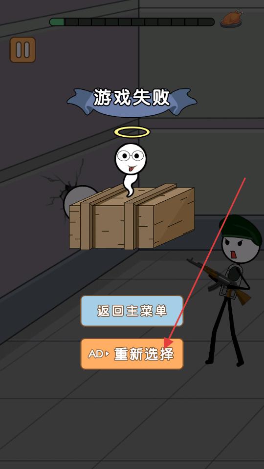 4、若操作導致游戲失敗彈出游戲失敗界面,此時點擊重新選擇按鈕,再次進入選擇環節,重新進行操作選擇,繼續開展冒險。