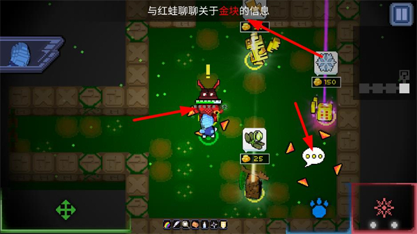 4、與紅蛙等NPC聊天,獲取關于金塊等信息,完成任務,獲取獎勵,助力像素冒險的劇情發展和資源積累。