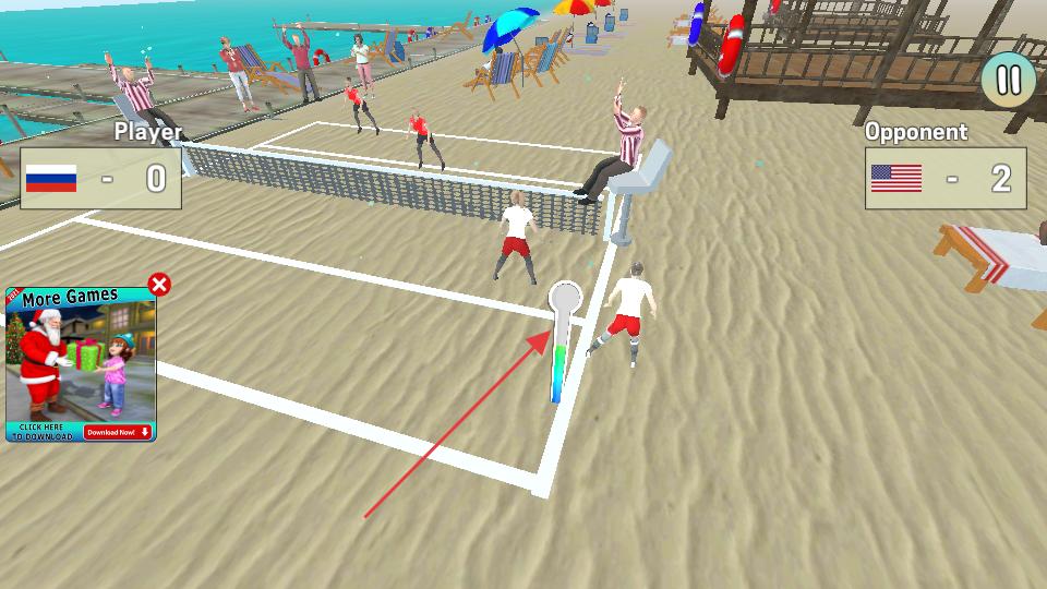 4、在比賽過程中當需要發球或擊球時,留意屏幕中的力度條,通過滑動或點擊等操作控制力度條,調整擊球的力度和角度,與對手進行排球對抗,爭取獲得比賽勝利。
