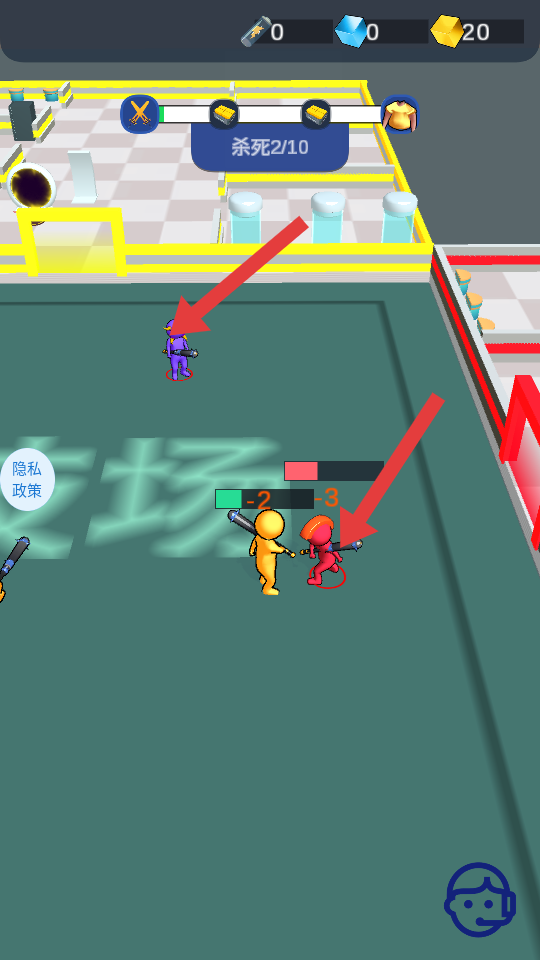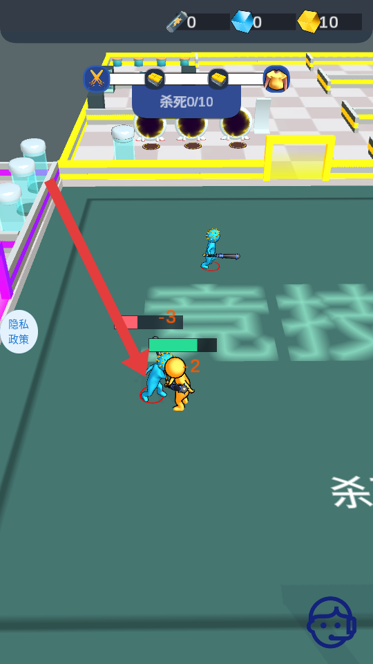 2、遇到藍色敵人,主動發起攻擊,通過戰斗削減其血量,成功擊敗后,積累殺敵數,向殺死10個的目標邁進。