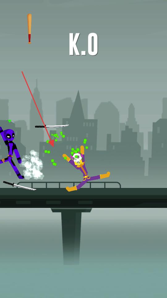 4、在實戰格斗中操控紫色火柴人英雄,利用武器和格斗技巧攻擊對手,通過合理的移動和攻擊,擊敗對手,完成該次格斗挑戰。