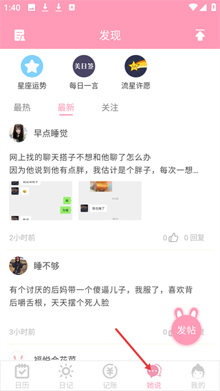 4、始說板塊有星座運勢、每日一言等內容,可發帖互動,是用戶交流生活、分享見聞的社交平臺,內容豐富且互動性強。