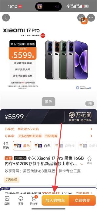 3、在手機詳情頁面點擊加入購物車,根據自己的需求選擇合適的選項。