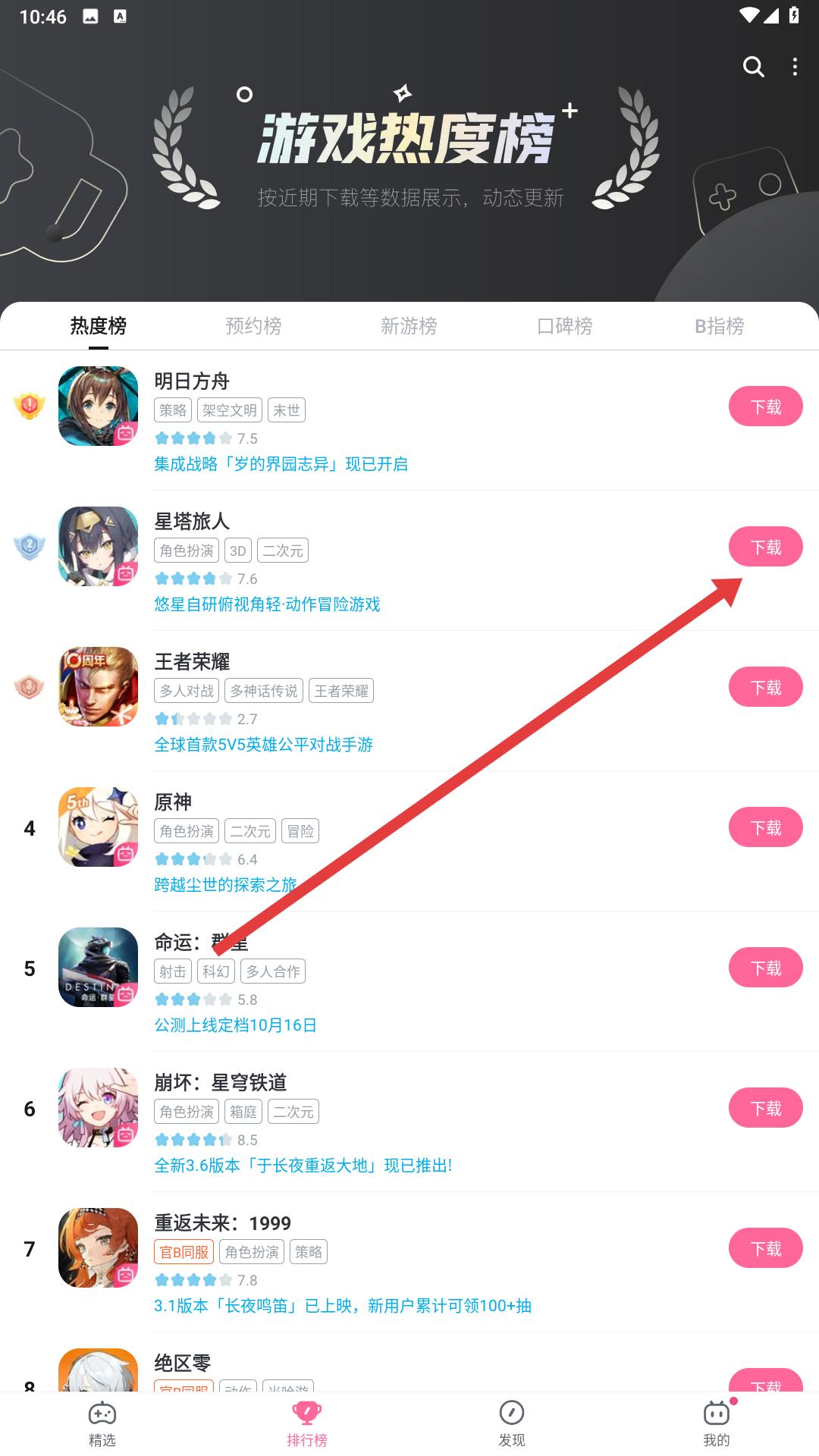 3、游戲熱度榜中,有非常多的游戲,找到星塔旅人,點擊其右側的下載按鈕。