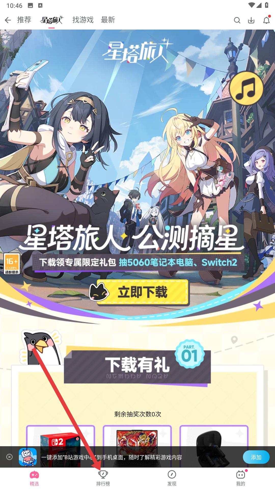 2、來到游戲頁面底部,尋找游戲,點擊排行榜,進入游戲排行榜界面。