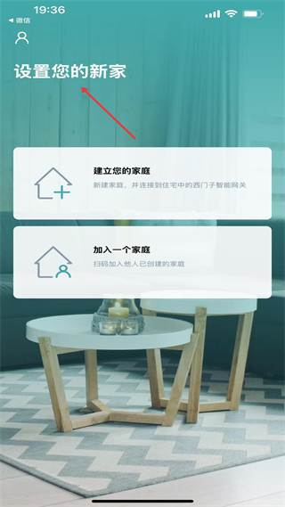 1、家庭設置界面,有建立和加入家庭選項,可新建家庭連西門子智能網關或掃碼加入他人家庭,開啟智能家居管理。