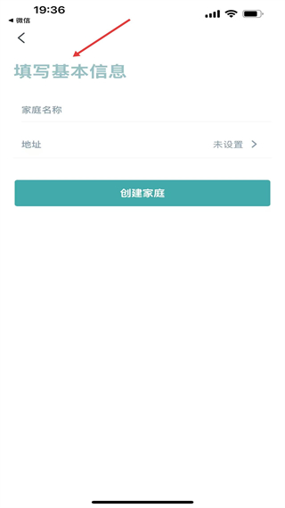 2、家庭信息填寫界面,需填家庭名稱和地址,完成后創建家庭,為智能家居設備管理聯動提供基礎信息。