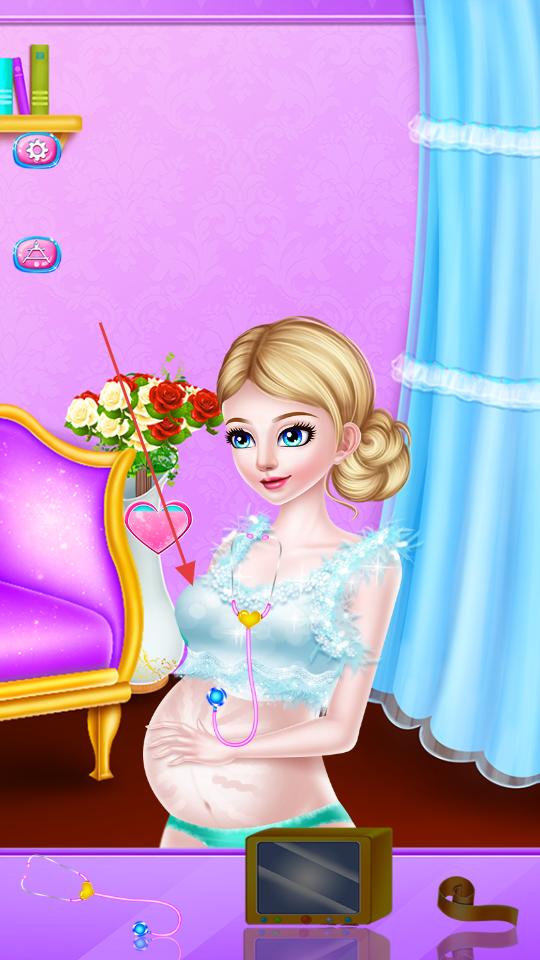 4、完成婚禮裝扮后場景切換到孕嬰相關場景,使用下方的聽診器等道具,為懷孕的角色進行檢查,體驗孕嬰互動操作。