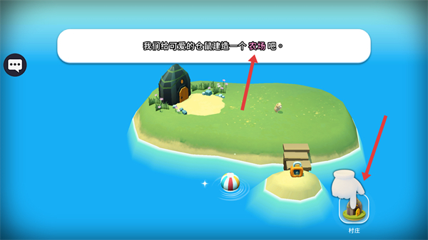2、提示要給倉鼠建農場,界面右下角出現村莊按鈕,點擊它,進入建造選項界面,準備挑選要建的建筑。
